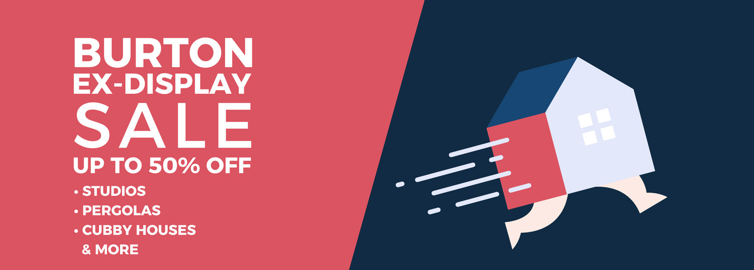 Get up to 50% off a range of ex-display studios, pergolas, cubbies and more